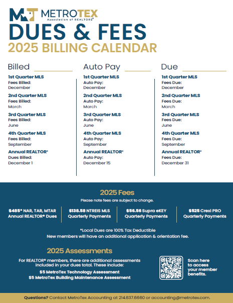 - Texas REALTORS® Legal Assessment of $10 (an approved increase of $5 over 2024)